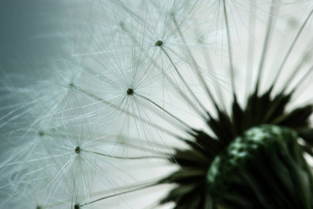 Dark and moody white Dandelion Taraxacum seed head with cool background colors