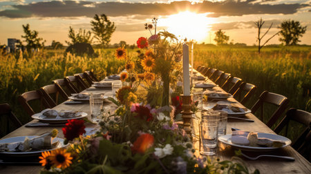 Aesthetic dreamy pastel hues of a sunset summer celebration outdoors