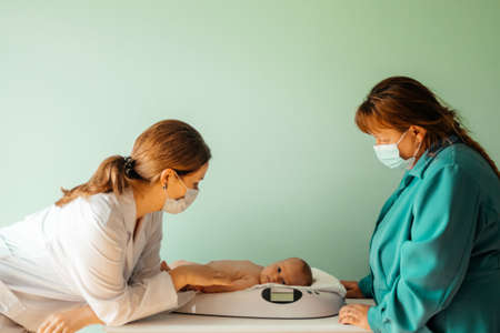 Baby on weight scale at the doctor