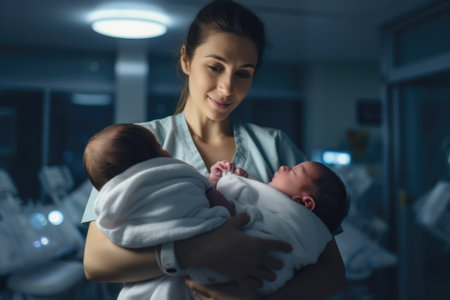 Nurse shares a special moment with a newborn in the hospital radiating joy and compassion.