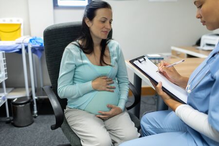 Pregnant woman having a consulttaion at the onbstetrician