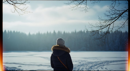 Serene Winter Scenery A Lone Adventurer Cross-Country Skiing Through Majestic Snow-Covered Forests