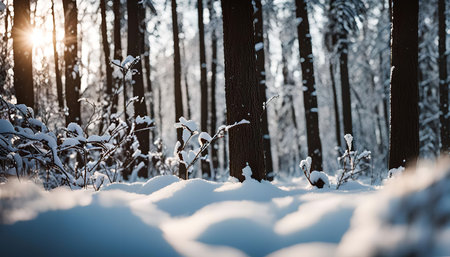 Snow covered forest scene in winter