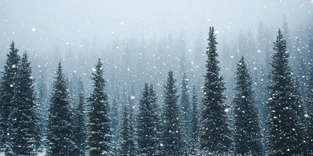 Majestic Winter Wonderland Featuring Snow-Covered Conifer Trees in a Serene Snowfall Landscape