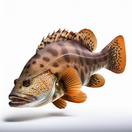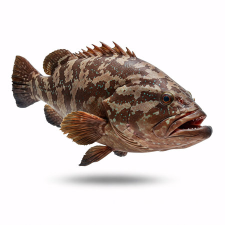 This stunning image features a grouper fish with vibrant coloration and intricate details, perfect for projects related to marine life and nature.