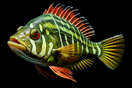 Multicolored Greenling fish in realistic style on black background, generative AI