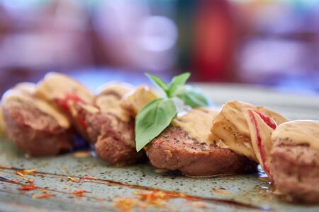 The food in the restaurant. Food styling and restaurant meal serving. Gourmet restaurant menu concept. Creative stylist restaurant