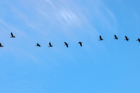 Cranes moving information in the sky. Migratory birds on the Darss. 100000 birds migrate every year in autumn from the north to the south and back again in spring. A natural spectacle that attracts many visitors.