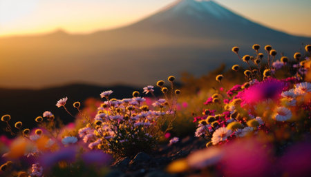 Mt. Fuji at sunset, Japan. The view from the back.