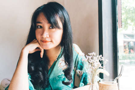 Portrait of thai china adult beautiful girl relax time, in Vintage Style