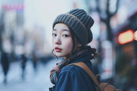 A young Japanese woman from Generation Z, leveraging her passion for technology and innovation to address pressing social challenges, her entrepreneurial ventures and tech-based solutions driving positive change in areas such as healthcare, education, and environmental sustainability, her vision and ingenuity shaping a better future for society.