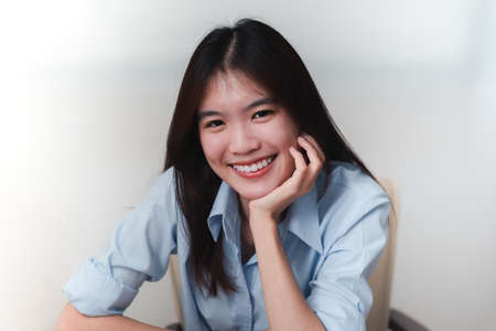 Cute Lovely Friendly Asian Women Young Girl, Healthy plus size happy smiling portrait
