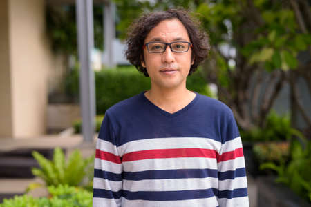 Portrait of handsome Young Asian Thai man in early 20s against white background