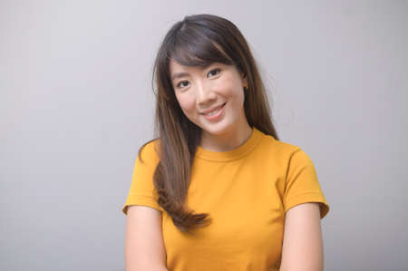Portrait of thai yellow shirt adult beautiful girl relax time, in Vintage Style