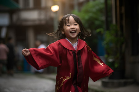 cultural of China as school kids participate in a festive celebration. Traditional atmosphere, vibrant decorations.