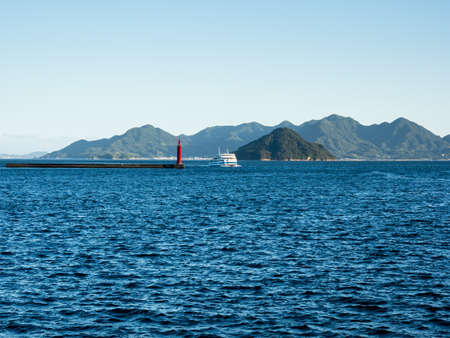 Scenic view from Hiroshima port at sunset with Togeshima and Etajima islands in the background
