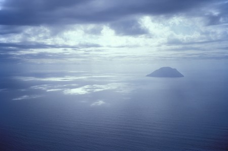 Picture of Alicudi island toked from Filicudi island with cloudy sky