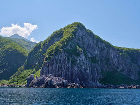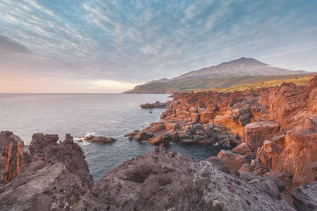Russia, the Kuril Islands, Iturup Island, sunset near the Yankito lava plateau on the Pacific coast.