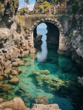 Stone bridge leading to Ryuogu shrine on Katsurahama beach, a famous scenic spot on the outskirts of Kochi city