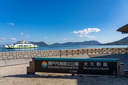 Okuno-jima ( Rabbit Island ) Second Pier, Setonaikai National Park. Hiroshima Prefecture, Japan