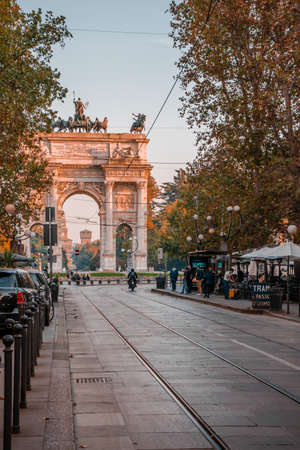 Milan, Italy 12.12.2023. Evening street in the historical center of Milan. Typical Italian buildings and street view in Milan, the capital of Lombard