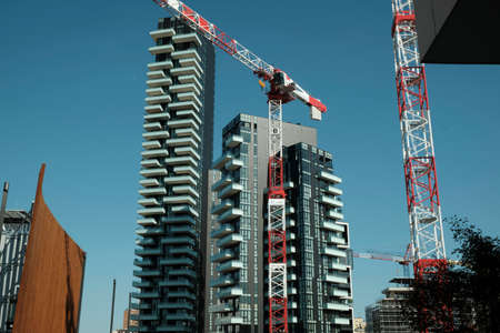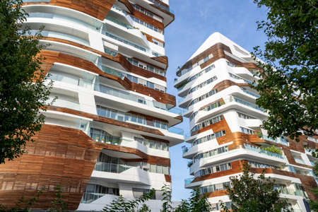 Milan, Italy, 06.29.2020: Futuristic, luxury apartments and offices within the new Milanese pole of innovation and business of Porta Nuova
