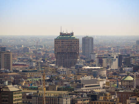 Milan aerial view. Milano city, Italy. Modern buildings view