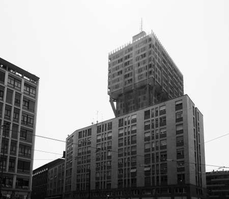 MILAN, ITALY - MARCH 28, 2015: The Torre Tirrena skyscraper in Milan designed by Eugenio and Ermenegildo Soncini architects in 1957 is a masterpiece of modern architecture vintage