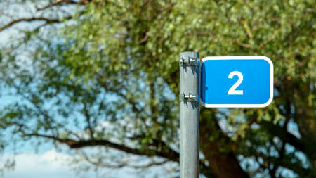 PUCON, CHILE - SEPTEMBER, 23, 2018: Close up of wooden informative sign of 20 km hrs inside of the Pucon recreative place in Chile