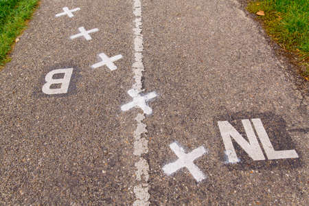 Baarle Hertog, Belgium and Baarle Nassau, the Netherlands October 10, 2019. The most complicated International border in Europe. Baarle is a village whose territory is divided into a bits of Belgian and Netherlands territories.