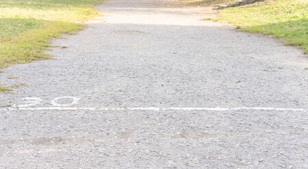 Speed limit 20 painted on asphalt