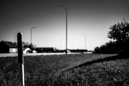 Border pole at the side of the road/Road at countryside