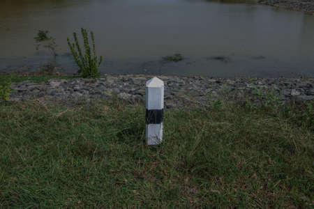 Black and White concrete pillars Beside Street. Milestone. Guard.