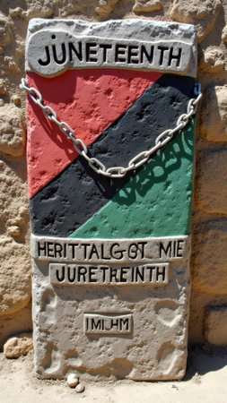 Juneteenth Juneteenth commemorative plaque with red black green colors and chain symbol. That the image is generated using AI.