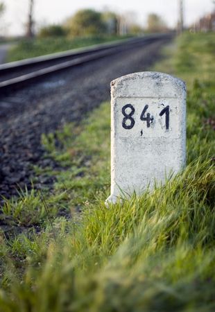 Railway milestone number 841 in the grass