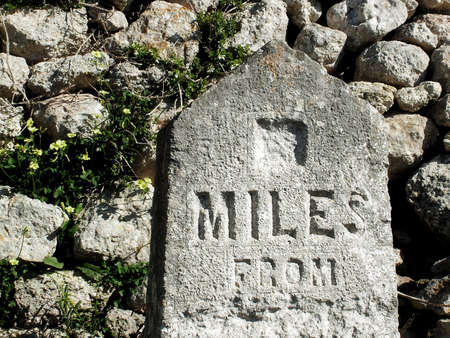 distance indicators to cities in the background blue sky