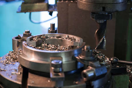 industrial drilling machinery with automatic process. Factory milling and drilling equipment and machines