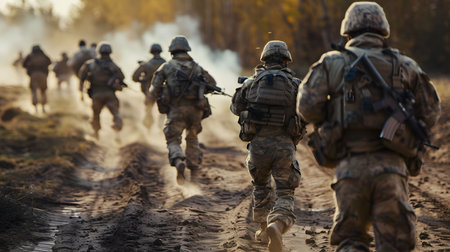 Brave army soldiers in camouflage uniform fighting for their country generated by artificial intelligence
