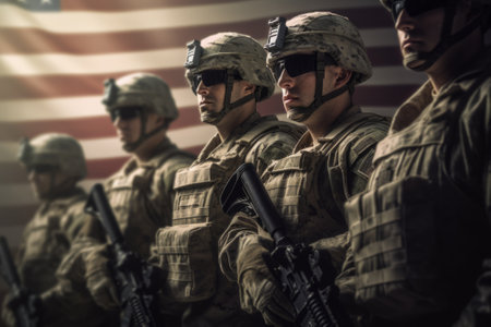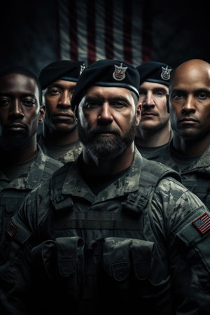 Portrait of a group of soldiers on the background of the American flag