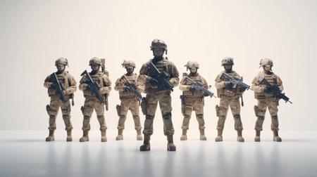 A group of uniformed military personnel in formation - AI generated