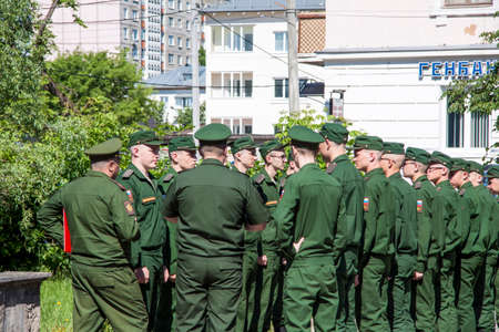 Yegoryevsk. 2019-06-02, Young fighters in military uniforms are preparing for the oath. The oath of young guys in the ranks of the Russian army. Young guys.