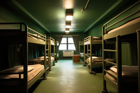 dormitory with bunk beds professional photography AI Generated