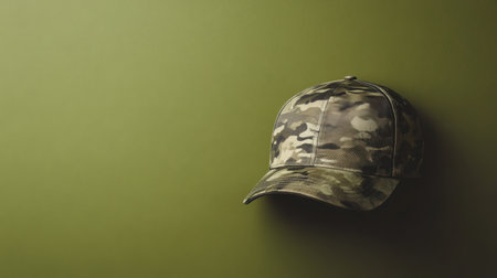 Men's two-tone cap on a white background. The baseball cap is black at the back, front and visor of the military workshop, khaki camouflage. Men's black cap with camouflage in macro. Side view, stern, top. Cap closure, button on top, ventilation hole