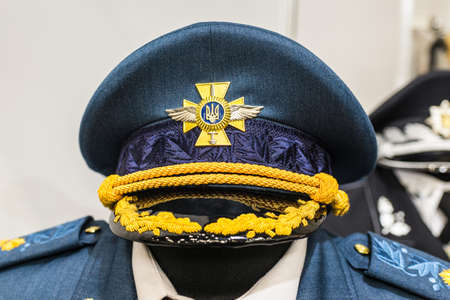 Kyiv, Ukraine - October 10, 2018: Cap of the Ukrainian army. International Exhibition ARMS AND SECURITY 2018