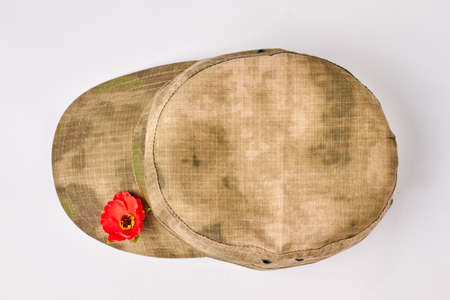 Cap with red star soldiers Red army, an old battered book and a St. George ribbon.Victory Day holiday