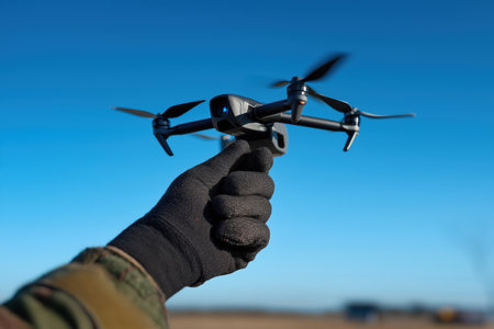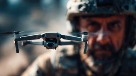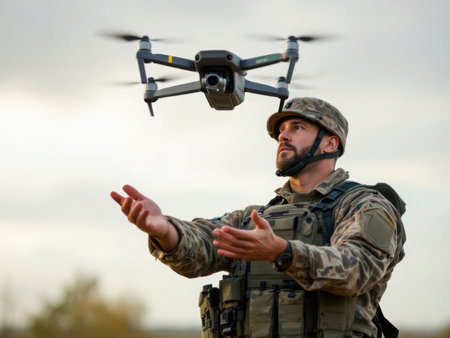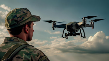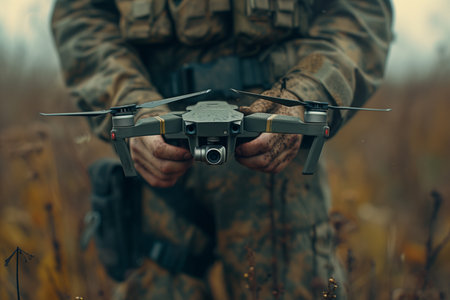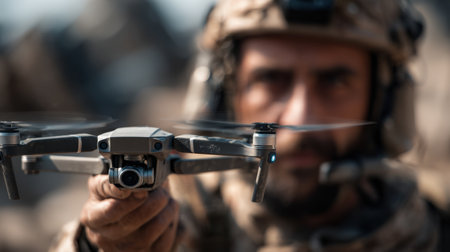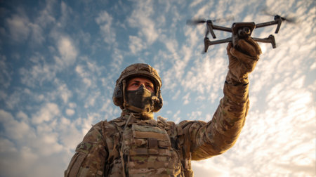 A soldier launches a drone to fulfill an important mission. AI generated image