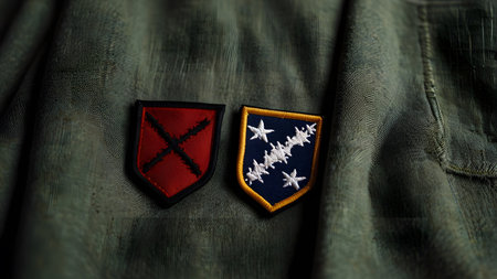 This close-up image showcases a detailed American flag patch sewn onto a military uniform, highlighting themes of patriotism and service.