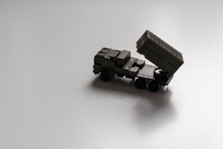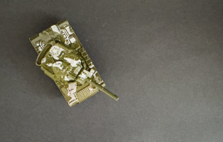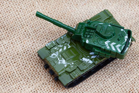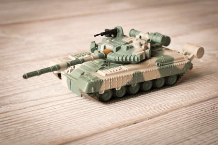 Toy tank with camouflage color. Military vehicles toy. Simple cheap toys for children, warfare, warzone vehicles
