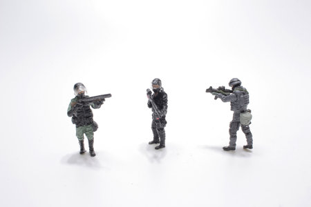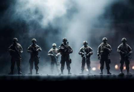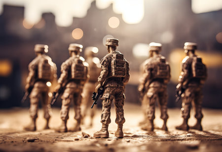 soldiers with weapons in their hands in contrasting colors. defense of the country and its defenders in form of toys, by ai generative