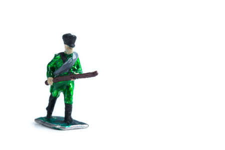 The concept of war and confrontation, political crises, toy tin soldiers attacking each other